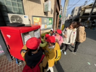 西京極西小学校に向かう途中になる西京極郵便局のポストに年賀状を出しました.