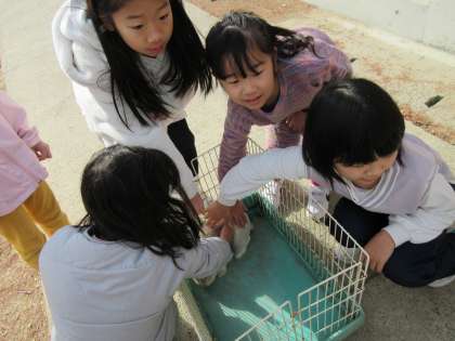 月曜日から2日間、うさぎのふれあい体験を行っています。