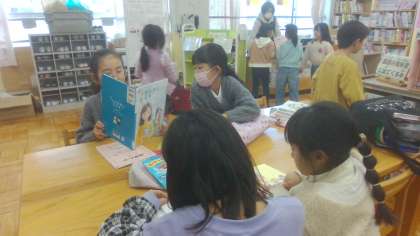 冬休みの宿題を返却し、新しい本を借りました。図書室に新しい本も入ったようで、色々な本を見つけて読む姿が見られました。100冊目指して読書を楽しみましょう。