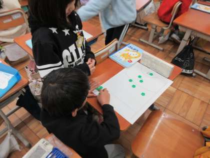算数の「大きいかず」の学習で、点取りゲームをしました。