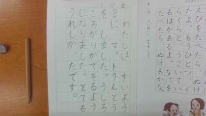 今後、毎週金曜日の宿題として出す予定です。特にテーマを設定はしていませんので、普段のことが伝わるようにかけているか、アドバイスをしていただいたり、励ましの声をかけていただいたりするとありがたいです。1つの出来事を詳しく書けるといいなと思います。
