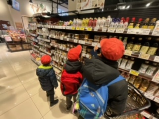 今まで育ててきた野菜を使って味噌汁を作るために、味噌と油揚げを買いに行きました。