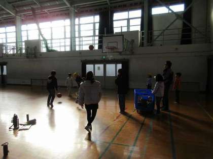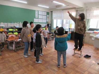 たてわりグループに分かれて、運動場や体育館、教室でレクリエーションを楽しみました。
