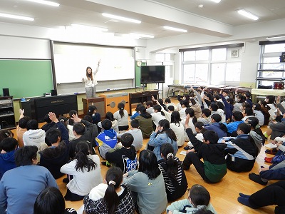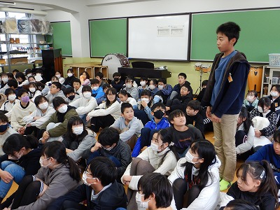 2月1日の学年集会では、1月の表現力アップ月間についての振り返りを行いました。約3週間、主に書く表現や話す表現を高めようと様々なことに学年で取り組んだり、日々の学習や生活の中で個々が意識したりすることで、力がついたなと思うことがたくさんあったようです。