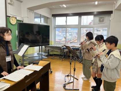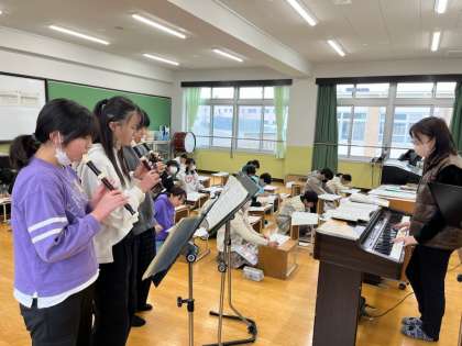 音楽科では、冬休みから今まで練習してきたリコーダー曲のテストを行いました。「ファランドール」または「キセキ」から選択して挑戦します。3人1組となり、みんなの前で緊張しながらも一生懸命練習の成果を出すことができました。この1年間で、タンギングが上手になった子どもたちがたくさんいます。継続は力なりですね!