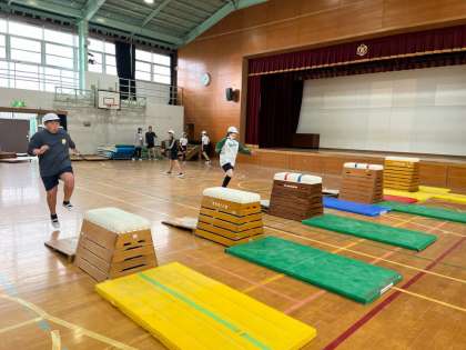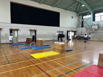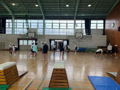 体育科では「とび箱運動」の学習に入りました。1時間目の今日は、準備の仕方や学習の流れ、きまりについてきちんと確認し、活動を行いました。