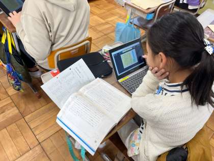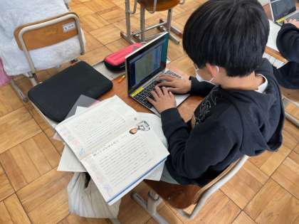国語科では、「メディアと人間社会」「大切な人と深くつながるために」の二人の筆者の伝えたいことを受け取り、「。これからの社会をどう生きていくのか」自分の考えをまとめました。筆者の論の展開の仕方や見つけた表現の工夫も生かしながら、それぞれがこれからの社会で生きていくのに大切なことや自分がすべきことを一生懸命考え、何度も練り直しながらまとめていました。次の時間は友達と考えを交流し合うことで、それぞれの考えが広がっていったらいいなと思います。