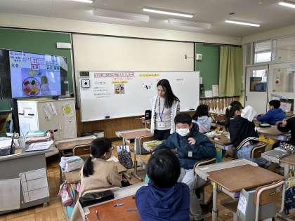 元気な体を作る朝ご飯をテーマに、食の指導がありました。