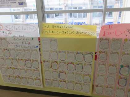給食週間では、各学年が給食調理員さんに向けてメッセージを書きました。