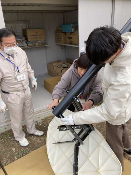運動場にバスケットゴールを設置しました。部品が水曜日届き、子どもたちが早く遊べるように毎日組み立てました。19日から楽しむことができます。