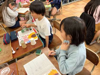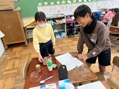 実際にはかりに乗せて重さをはかったりもしました。