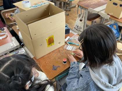一人一人、段ボールの中を工夫して製作中…