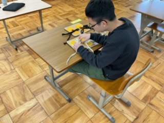 朝の時間に漢字学習や蝶々結びの学習をしました。
