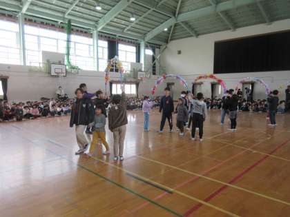 1年生を迎える会と同様、1年生と一緒に入場した6年生。