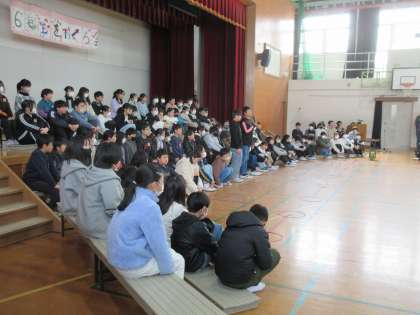 送る会の最初には自分たちの将来についてしっかりとした言葉で全校の仲間たちに伝えました。