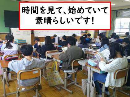 2024年、教室で過ごした最初の日の朝学習の時の様子です。朝学習の時間を確認し、時計をしっかりと確認したり、周りに声をかけたりする子どもたち。すごくいい姿でした!今できていることを継続しつつ、着実にできることを増やすことができる1年になるように、みんなで力を合わせて進めていきます。