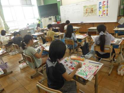 3年生 絵のぐ+水+ふで=いいかんじ!