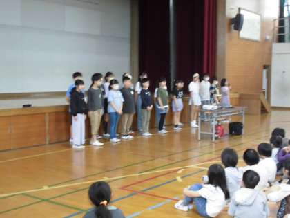 5月の朝会が行われました。一年生にとっては初めての朝会でした。