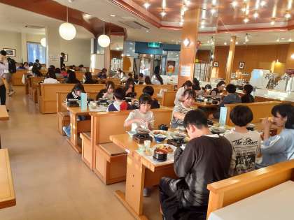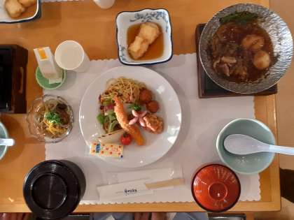 たくさん活動した後の夕食はおいしい!楽しく、おいしくいただいています!この後は入浴とレクリエーションです。
