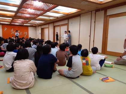 レクリエーション係のみんなが中心になって、すすめます。じゃんけん列車や○✕クイズ、寸劇と盛り上がりました!たくさんの笑いにつつまれて楽しい時間となりました!