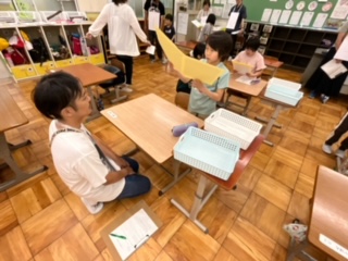 たくさんの先生がわかばの教室に来てくれました。先生に考えた質問「好きな食べ物は何ですか。」「好きな遊びは何ですか。」等をして、メモを取りました。また、先生の写真を撮る人もいて楽しそうに学習する様子が見られました。