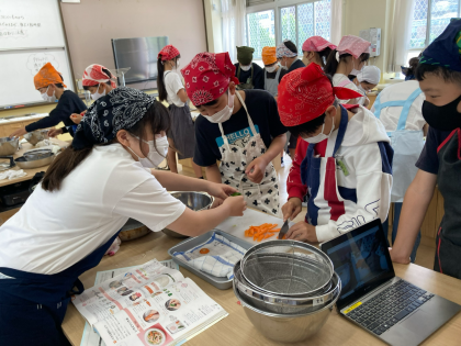 また、グループで協力して用具を準備したり、隙間時間に洗い物をしたりと、初めて調理実習をした日からの成長を感じました。子ども達の振り返りの中にも、