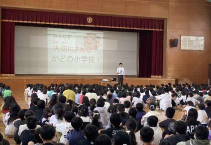 先日、6月の朝会が行われました。校長先生から「この2か月を振り返り、これからもみんなが大切にされる葛野小学校にしていきましょう。」というお話がありました。続いて濱口先生から6月と7月のともだちの日について「これからの2か月はお友達のことについて考えてみましょう。」というお話がありました。