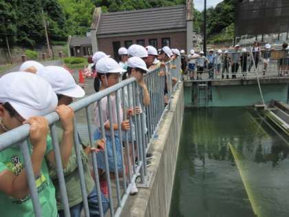 そして、琵琶湖から運んできた水は、藻や泥が混じっていますが、数か所の池を経ていくとで、透明になっていく様子を見ました。飲料水になる最後の所は、雨水や埃、雑菌が混じってはいけないので見学はできませんが、教科書で学んだ内容を深めることができました。