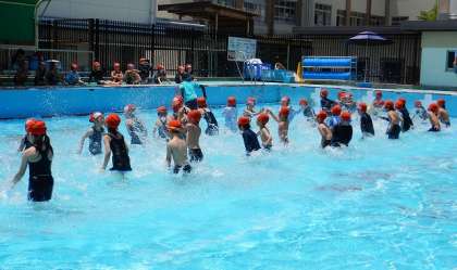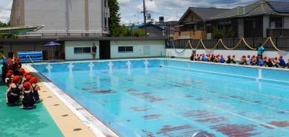 真夏日が続いている今週、いよいよ1年生のプールでの学習が始まりました。
