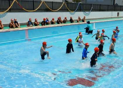 水に入る前には、安全のためのきまりをしっかりと聞こうとする子どもたちの様子もありました。