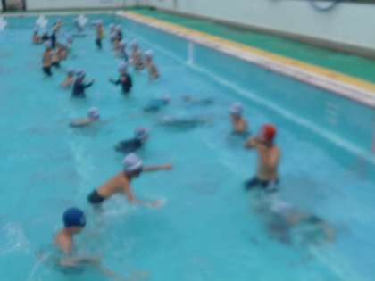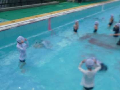 2年生になって久しぶりの水泳学習であるため、低水位で