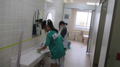 6年生は、トイレ掃除も担当しています。短い時間の中で、床掃除をしたり、手洗い場を掃除したりしてくれています。いろいろな人が使うトイレを、毎日一生懸命掃除している子ども達の姿は、素晴らしいなと感じます。
