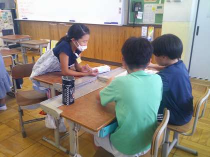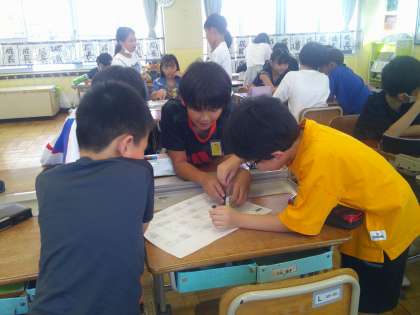 夏休み明けの2組の様子です。始業式と大掃除が終わった後に、アイスブレーキングとして夏休みにあったことすごろくをしました。それぞれのマスには夏休みに関する質問が書いてあり、そこに止まったマスのテーマについてグループで話をします。子どもたちは夏休みにあったことや頑張ったこと、楽しかったことなど、グループの子どもたちに楽しそうに伝えていました。