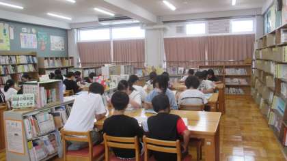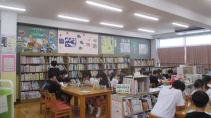 夏休みの本や、学習で使った本を返却しに行きました。その後、図書室で読書しました。1日目から集中力が感じられました。