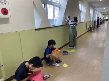 図画工作科は造形遊びを行っています。それぞれが選んだ場所の特徴や形を生かして、それを作品にしていきます。階段があんなものに!名札入れがこんなものに!どんなものに変身したのか、聞いてみてください♪