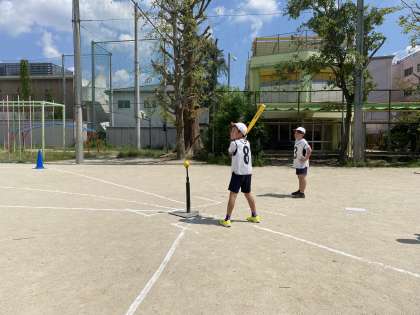 きれいな青空の下、体育科は『ベースボール』の授業が始まりました。鉄棒運動と並行で進めていきます。今日は久しぶりのベースボールだったので、ルールを再確認しながらバッティングや守備を楽しみました。いろいろなポジションを守りながらアウトにできた機会も多かったので、守備の楽しさも感じていた様子です。回数を重ねて、どんどんレベルアップしていきましょう!