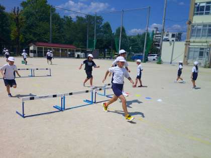体育科のハードル走の様子です。40mハードルに挑戦中です。