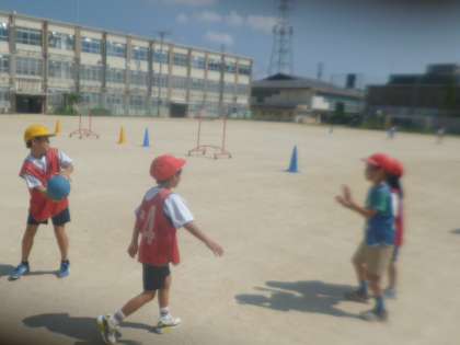 声をかけ合ったり、パスがもらえる場所を見つけて動いたりしながらゲームを進めていました。