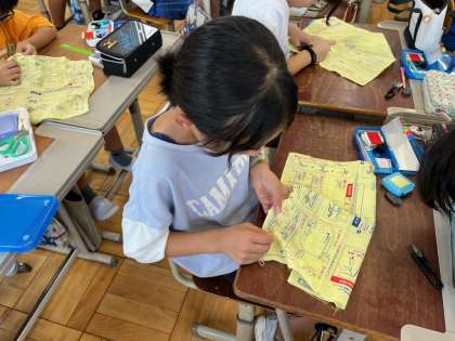 家庭科の裁縫の学習では、基本的な縫い方である、なみぬい・本返しぬい・半返しぬい・かがりぬいを習得しようと練習を進めてきました。初めは、糸通しにも苦戦していた子どもたちも、繰り返し練習を重ねることで随分と上達してきました。玉止めも、布の近くでできる子どもたちがたくさん!継続は力なりですね。