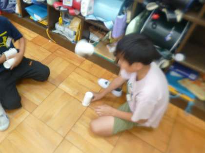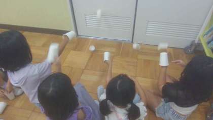 輪ゴムと紙コップを使って、とぶおもちゃを作りました。