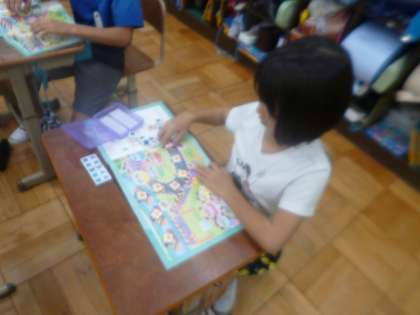 遊園地の色々な乗り物に乗っている人の数を、数図ブロックを使って調べました。