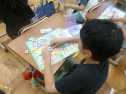 同じ人数ずつ乗っている乗り物と、そうでない乗り物とがあることに気付き、かけ算につながる「〇このいくつ分」という言い方を学習しました。