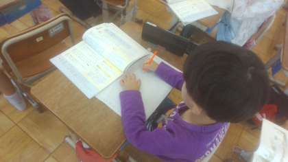 国語の「お手紙」の学習で、がまくんとかえるくんに向けてお手紙を書いています。