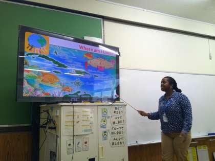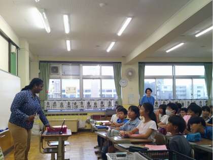 The new teacher of ALT was coming our class!新しく来られたALTの先生の授業がありました。最初に先生にお会いしてから、授業に来てもらえる日をすごく楽しみにしていた子どもたち。先生の自己紹介をとても楽しそうに聞いていました。次の外国語にも早く来てほしですね!