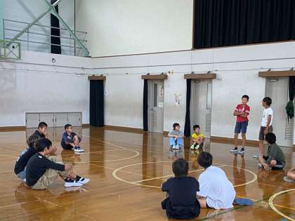 山の家の係活動として時間をかけて取り組む時間は最後になりました。レクリエーション係は、いきなりゲームを始めるのではなく、寸劇のようなものを入れたりルール説明を入れたりしてレベルアップを図り、最初と比べて格段に良くなりました!合間の時間にペア同士でセリフ合わせをしたり、動きの確認をしたりとよく頑張っていました。あとは本番に向けて最終確認をして、キャンプファイヤーを盛り上げることができるように頑張りましょう!