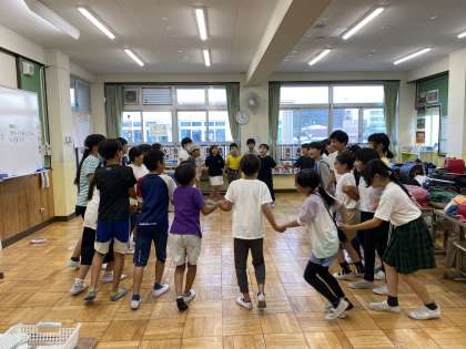 クラスではやりのフォークダンス。今日はクラス全体で踊りました。帰りの会の一幕ですがとても楽しそうです。山の家本番では子どもたちの司会の下、学年で踊ります。キャンプファイヤーのルールや決まりは守りながら楽しめたらいいですね!