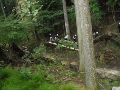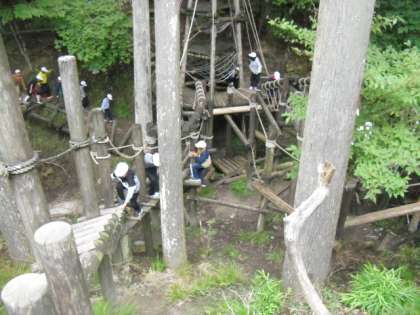 雨も予想されることから,予定を変更し,荷物整理の前に「冒険の森」に