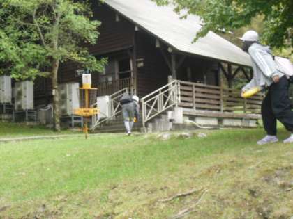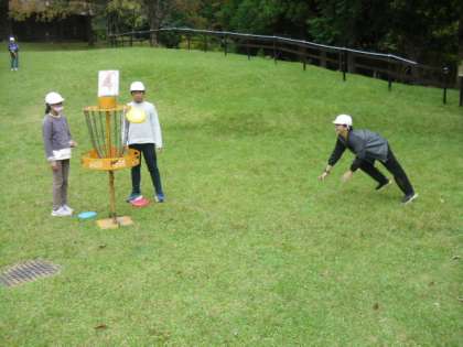 フリスビーを投げ,ゴールのカゴに何回で入れられるか?というものです。
