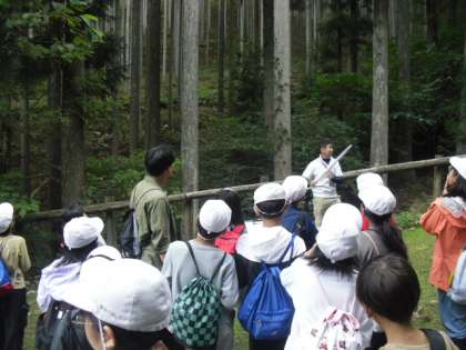 山の家の所員さんからは,動物の歩いたあとや広葉樹のことなど,ゴシ谷で出会える自然について教えていただきました。