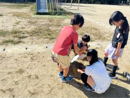 理科「かげと太陽」の学習で、日なたと日かげの温かさの違いを温度計で測りに行きました。午前9時と正午の間で温度が上がっているなど観察をして気づくことがたくさんありました。次回の授業では、観察のまとめを行います。